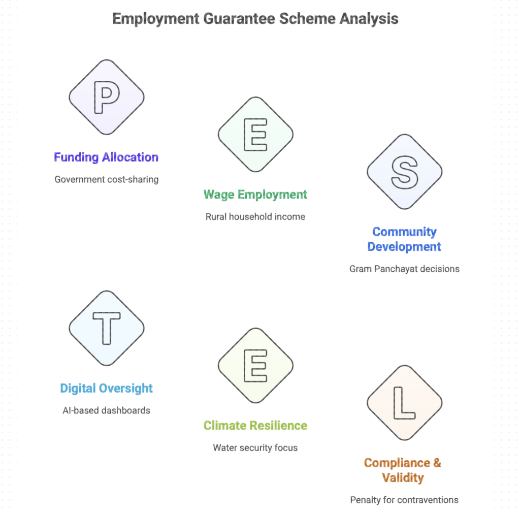 • Delinking from rights‑based framework: Scholars note that the Act emphasises development planning and infrastructure over the original rights‑based, demand‑driven ethos of MGNREGA. Ensuring that workers’ voices and local needs remain central will be critical.